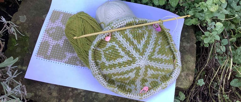 The motif is a repeating acorn and oak leaf design, using my Tunisian no-float colourwork method. It’s still growing, but I can already see the woodland magic coming together.