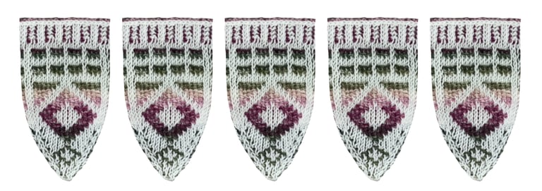 Let’s start with the basics by looking at the Briardale pattern as an example. When working a Tunisian No-Float hat in the round, the hat is worked top down in a spiral, round by round. The pattern is divided into repeating sections (also called points). In Briardale, the hat is worked in five sections, all of which meet neatly at the very top of the crown when the hat is finished. (Other patterns may use a different number of repeats.)