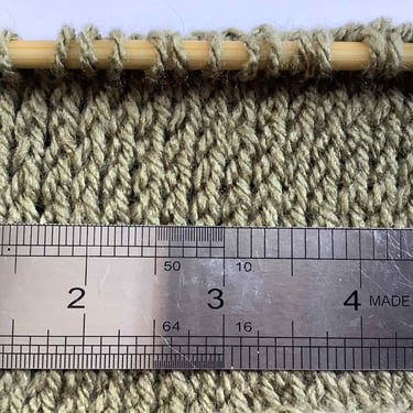 This shows the number of stitches and rows per 4-inch (10 cm) square that I’ve measured from a finished project.