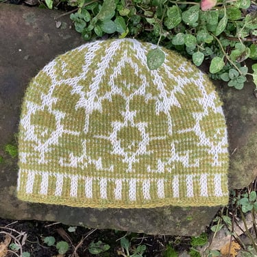 Designed for makers confident with charts and working in the round, the Oaklands Beanie comes in two sizes (16–18" and 20–22" head circumference) and is perfect for those seeking a sophisticated, textural project.
