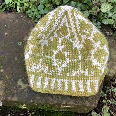 I chose alpaca yarn for its luxurious softness, warmth, and lightweight feel. Its natural halo enhances the motifs, making the beanie feel indulgent, while also being hypoallergenic and breathable.