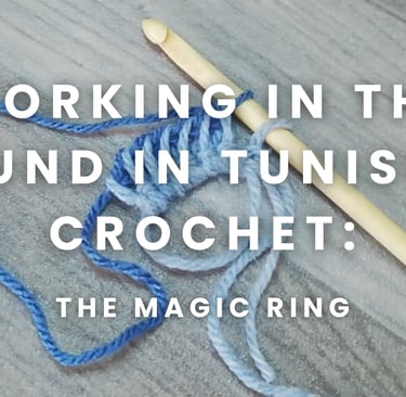 There are two ways to work in the round, either by joining a long chain to make a circle or working from a magic ring. In this post I will show you how to work in Tunisian Crochet in the round (TITR) using the magic ring method. We'll cover the basics of creating the magic ring, casting on for the Forward Pass. In Part 2 you will learn how to attach a second colour yarn and perform the Return Pass.