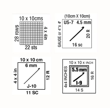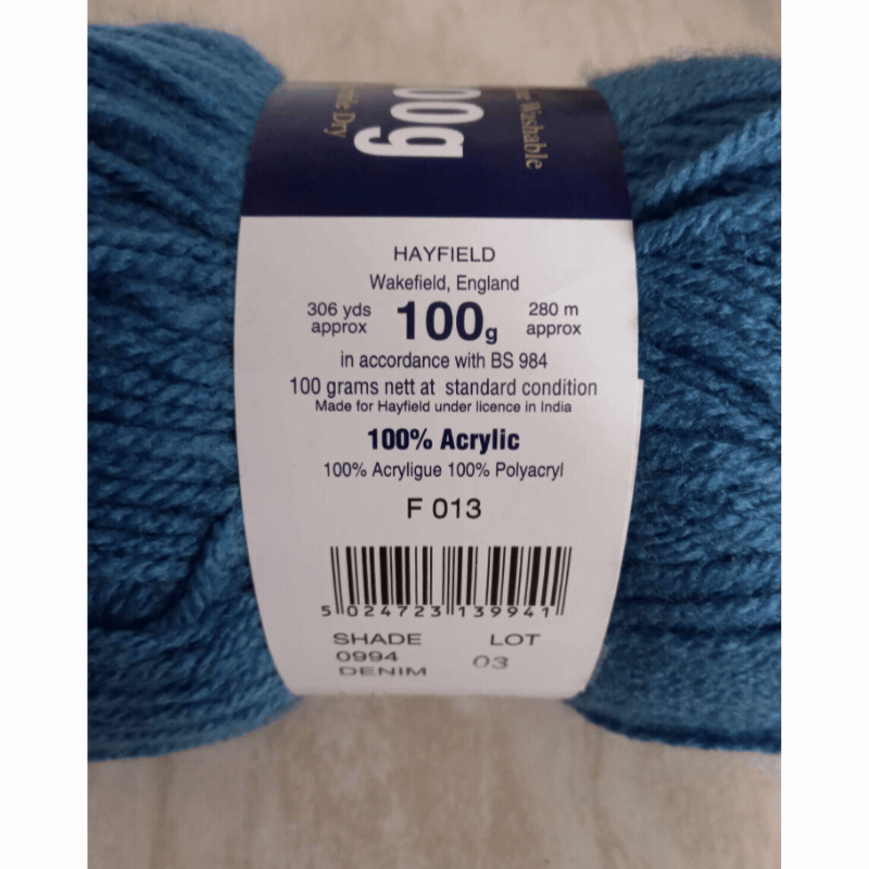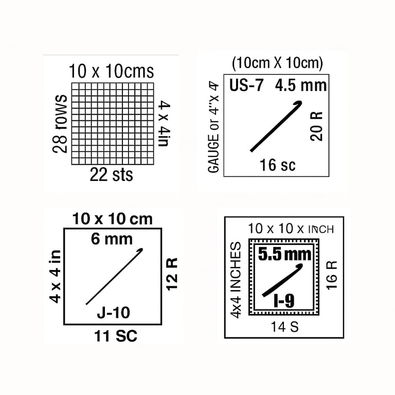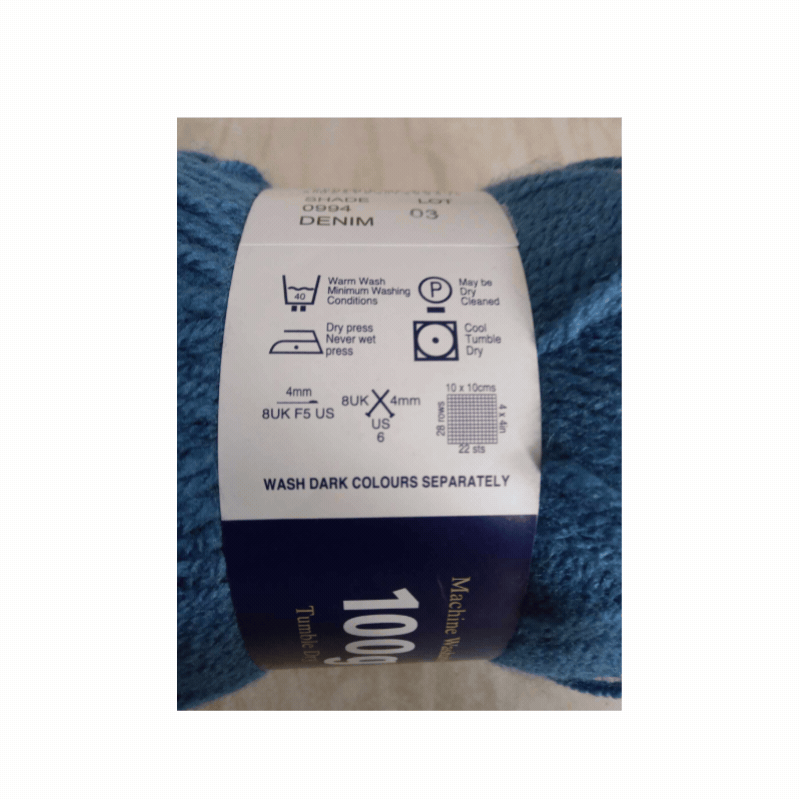 The design of this label may vary between brands, but it will always display the number of stitches and rows worked over a 10 x 10 cm (4 x 4 inch) square.