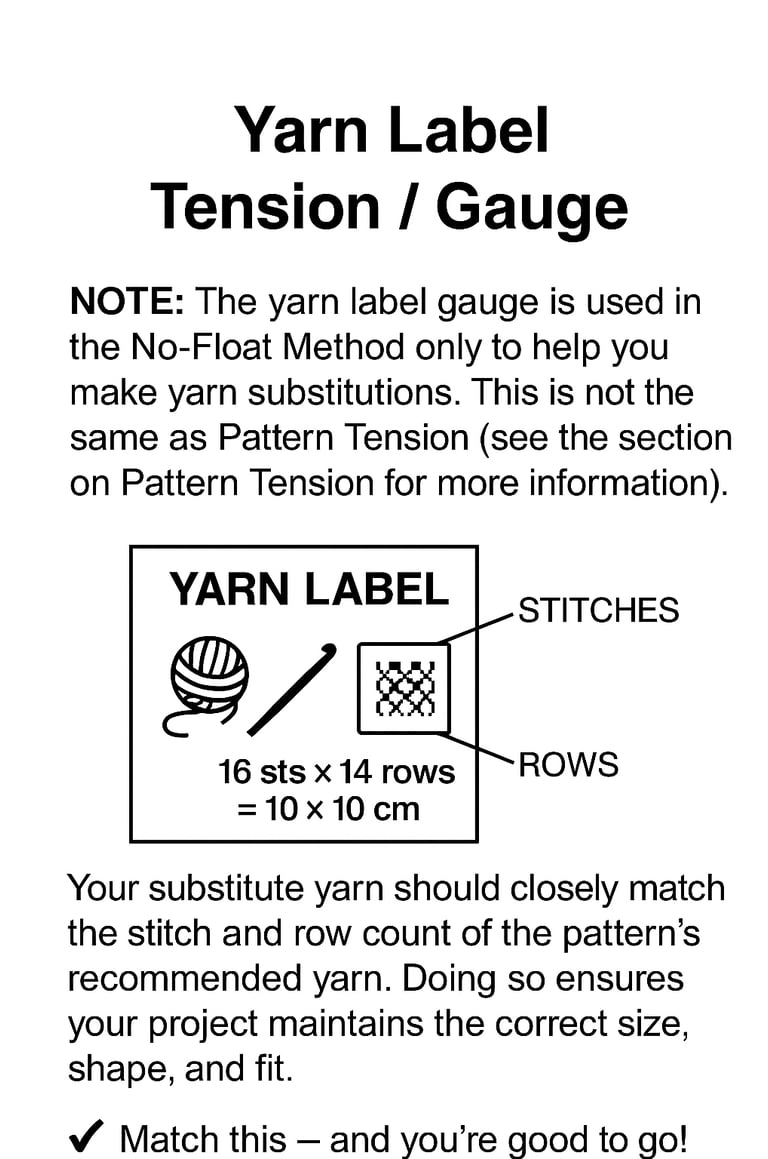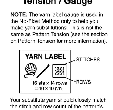 Note: The yarn label gauge is used in the No-Float Method only to help you make yarn substitutions.